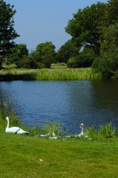 Swans by lake