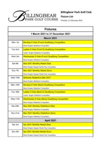 2021 Fixture List (Mar – Dec)